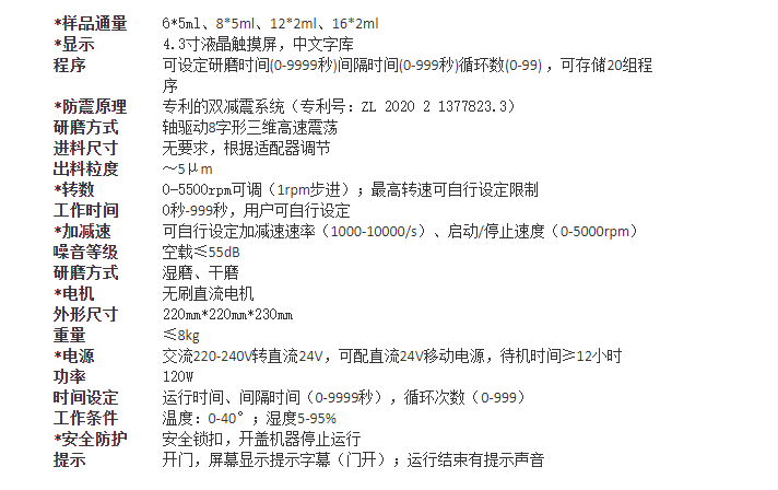 我公司开发的中通量研磨仪,在专利的双减震系统(专利号:ZL 2020 2 1377823.3)基础上,采用可任意调频(间隔1rpm)的高性能无刷直流电机。通过轴驱动方式,带动研磨管(研磨珠)做高速8字形三维运动,利用机械动能在30s内将样品破碎。