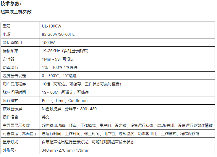 ■ 运行模式设定有三种:连续使用、脉冲、定时连续超声,满足多种材料处理。
