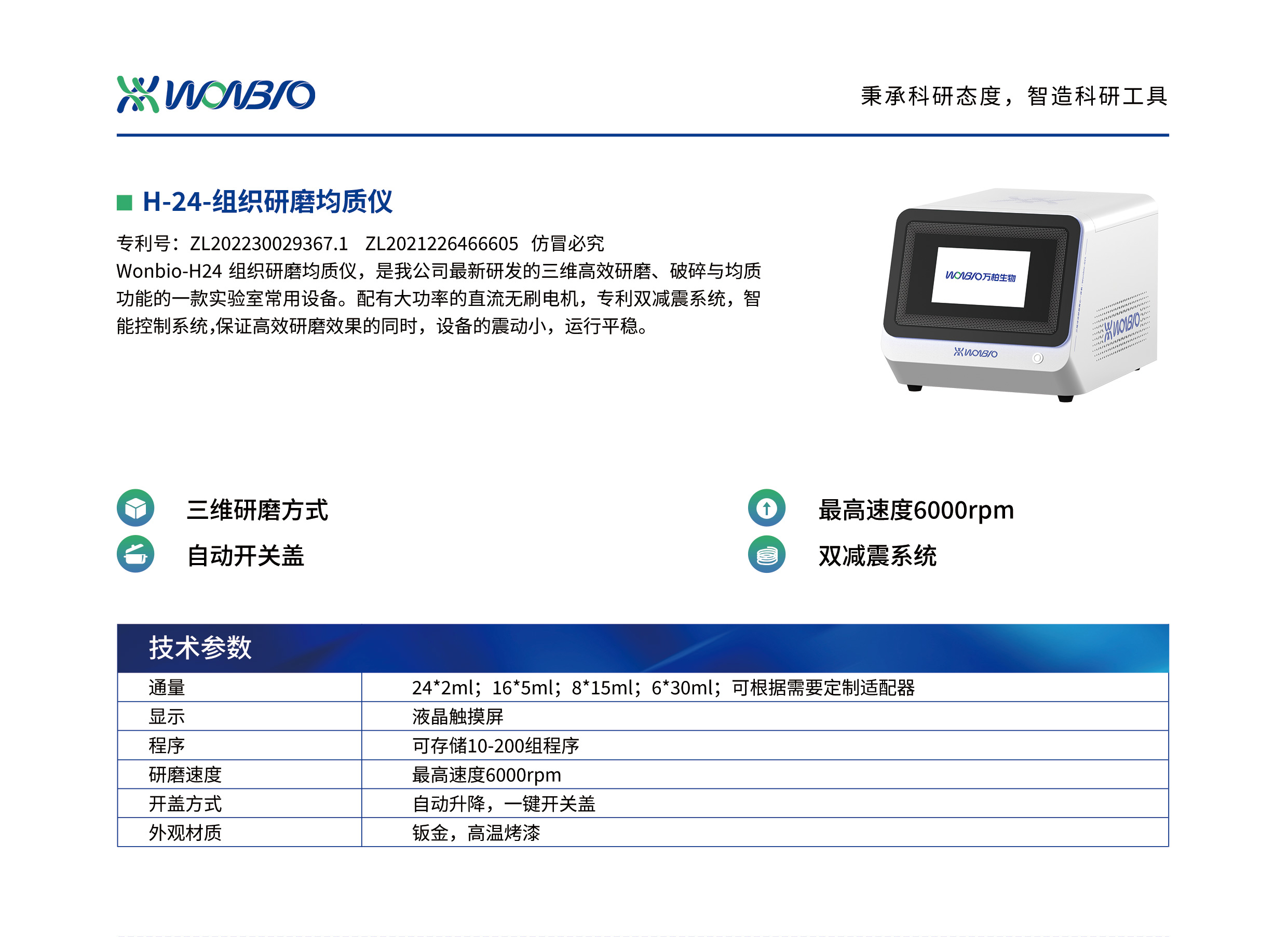组织研磨均质仪,是我公司新研发的三维高效研磨、破碎与均功能的一款实验室常用设备。配有大功率的直流无刷电机,专利双减震系统,智能控制系统,保证高效研磨效果的同时,设备的震动小,运行平稳。