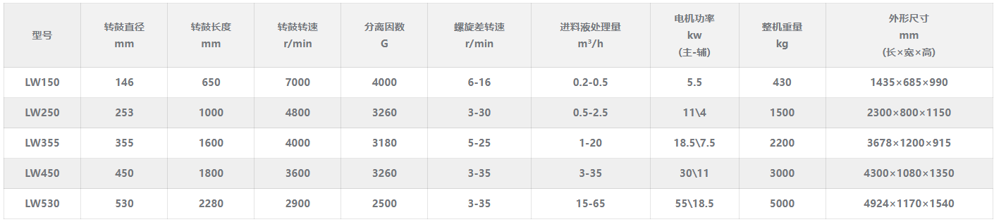 - 卧螺离心机产品参数