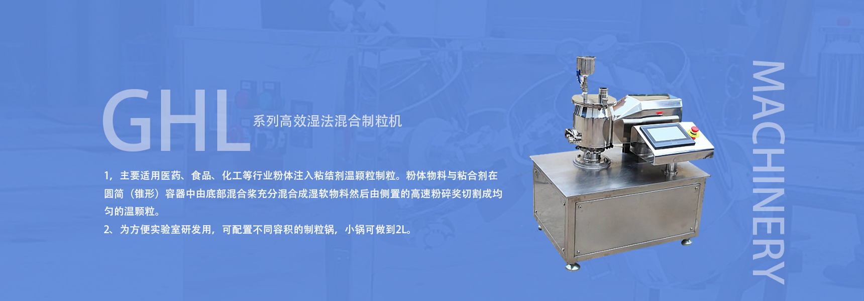 GHL高效湿法混合制粒机的介绍主要用途主要适用医药、食品、化工等行业粉体注入粘结剂湿颗粒制粒。工作原理:粉体物...