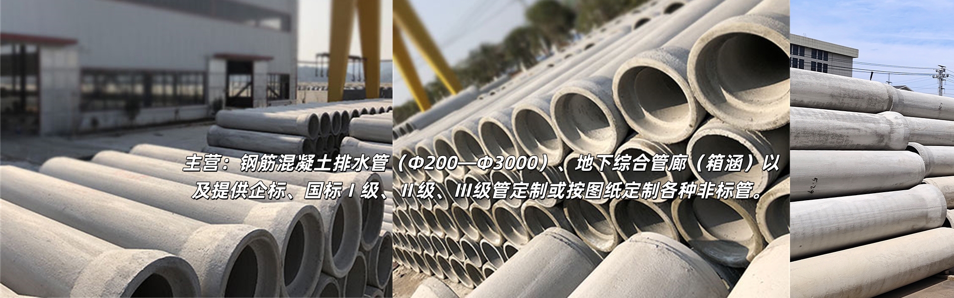 钢筋混凝土排水管(Φ200—Φ3000)、地下综合管廊(箱涵)以及提供按图纸定制各种非标管。