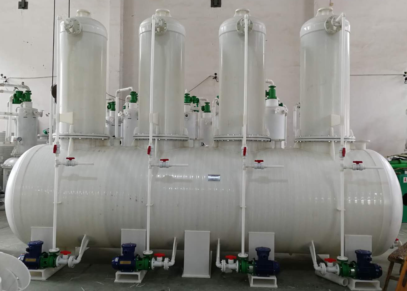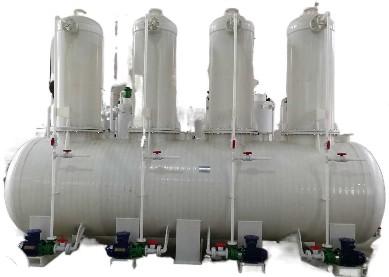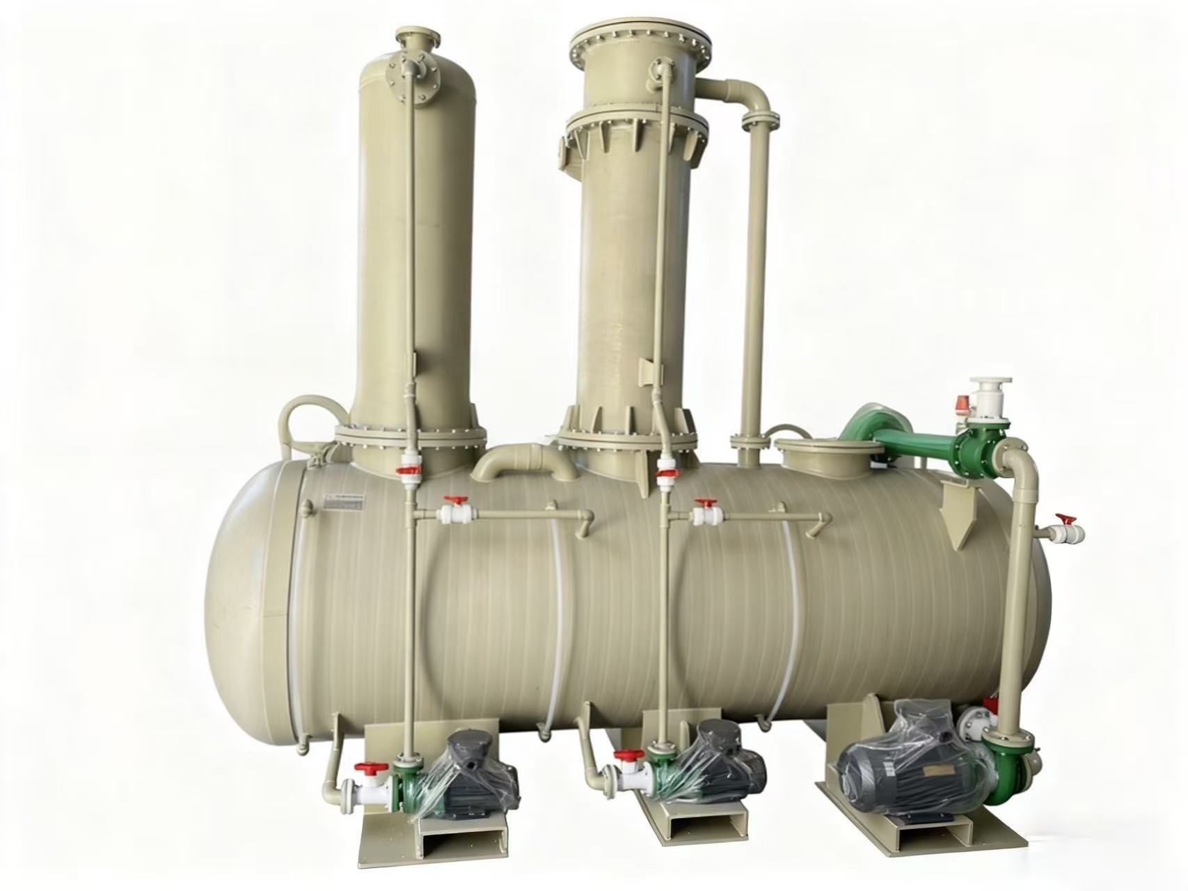 在结构设计上,该装置展现出优势:创新性地将降膜吸收器、填料吸收塔、水喷射真空机组、酸槽及对应型号的循环泵整合为一体化结构,并巧妙将冷却器内置于酸槽之中,大幅提升空间利用率,实现结构的高度紧凑。为方便用户使用,所有装置在出厂前均已完成安装与调试工作,用户收货后需简单连接水电,或进行基础组装操作,即可快速投入生产运行,极大降低了现场安装难度与时间成本。