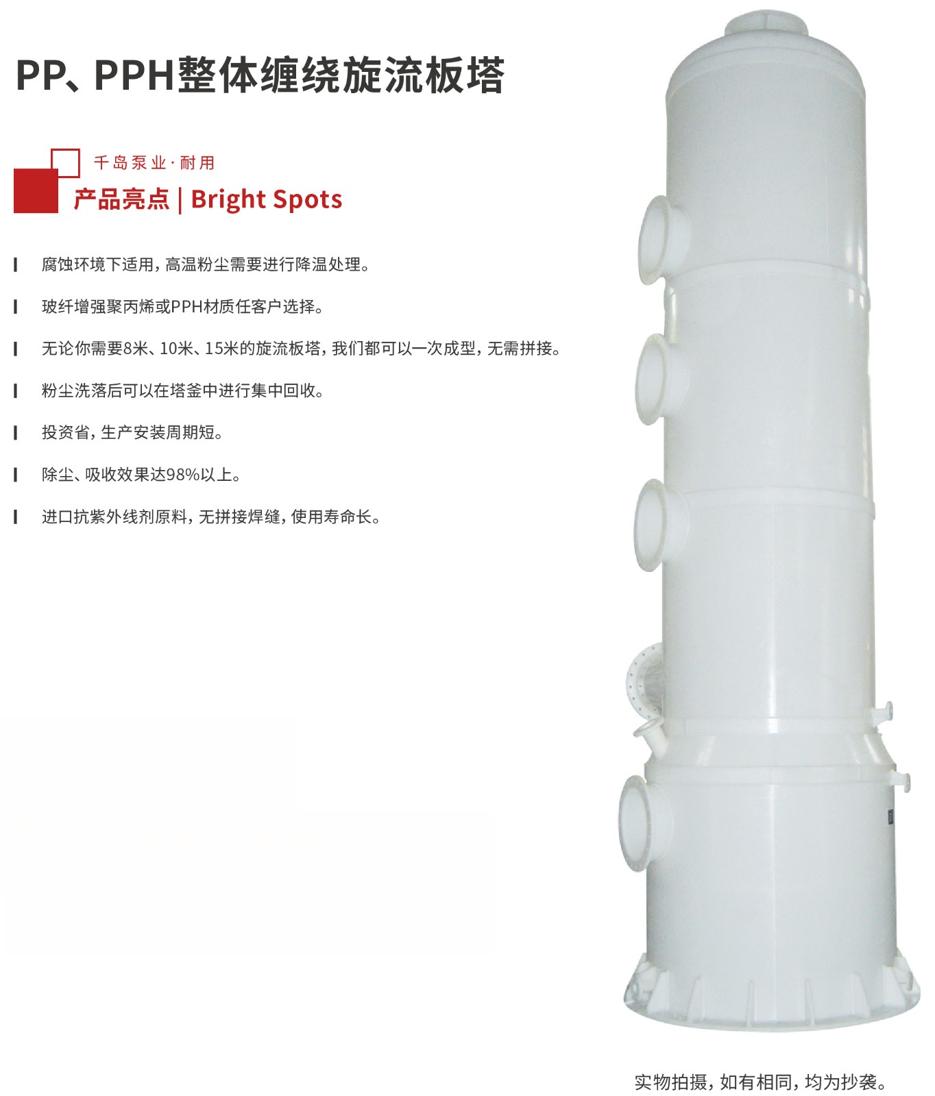 ⑤除尘、吸收性能好,可达98%以上