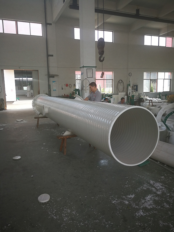 2017年初,我们与青岛某公司一起研发了国内**并且是**台无限长度聚丙烯缠绕贮罐筒体生产线。直径从800-3500mm。国内其它厂家生产的缠绕罐体一般长6米,而我们是不限长度的。您可以想像一下,如果您要做一个7米的废气吸收塔,原来花了大价钱说是整体缠绕无焊缝,结果**又要接一段,您会是什么心情?现在好了,不用纠结,直接选我们就可以了。无论7米还是10米,15米,真正的整体缠绕无焊缝。目前似乎,可能,也许,国内只有我们可以做到。